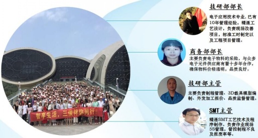 技研部部长、商务部部长、技研部主管以及SMT主管各司其职,分别管控生产各个流程,确保生产各环节的准确,为每位客户服务到位